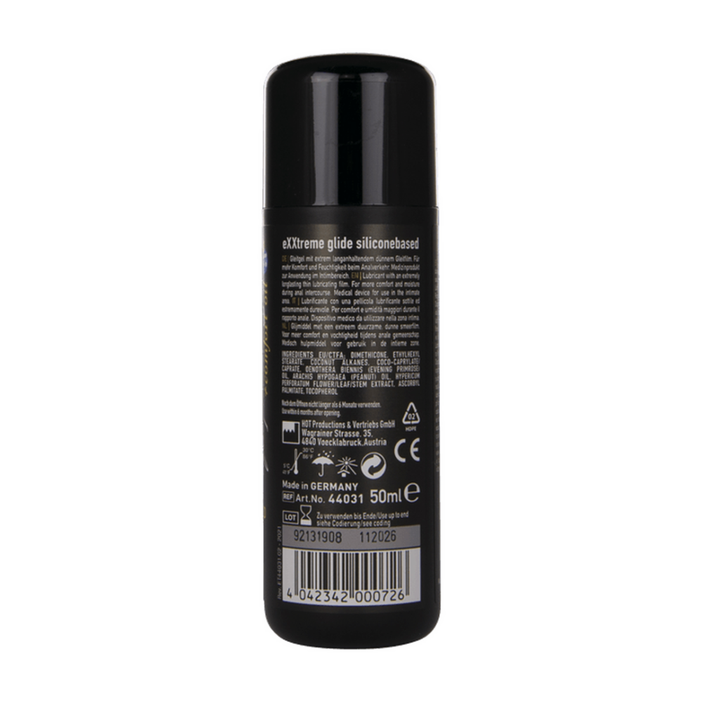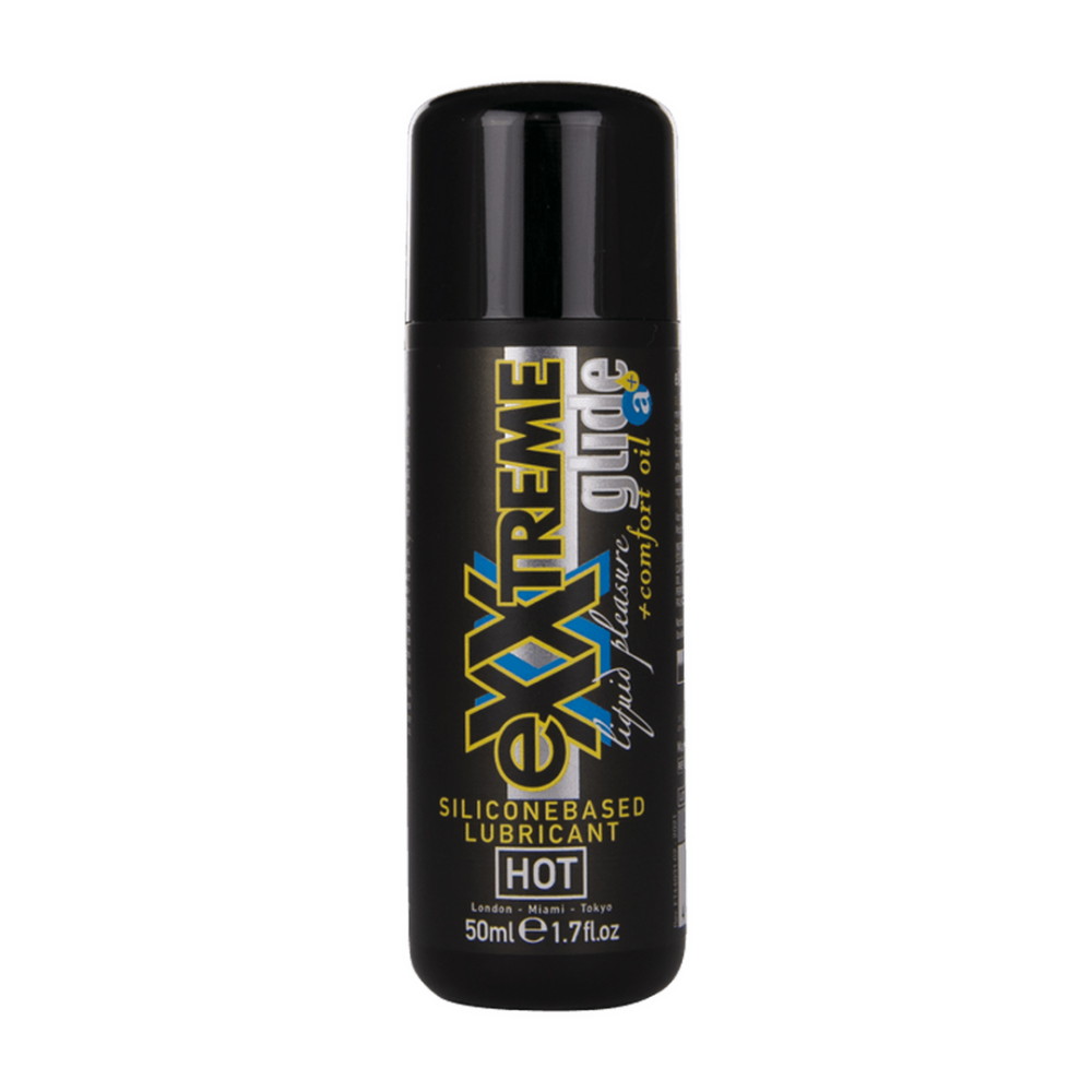 HOT EXXTREME GLIDE met comfortolie en glijmiddel op siliconenbasis voor de hoogste eisen, vooral voor anale geslachtsgemeenschap. Bevat extracten van sint-janskruidolie en teunisbloemolie om de spieren te ontspannen. Deze combinatie van speciale, cosmetische siliconenoliën van de hoogste kwaliteit zorgt voor een ongelooflijk aangename smering. Extreem langdurige glijfilm, geur- en smaakloos, zorgt voor een zeer glad en zijdeachtig gevoel. Bijzonder geschikt voor gebruik met condooms, rubber- en latexproducten en speelgoed.