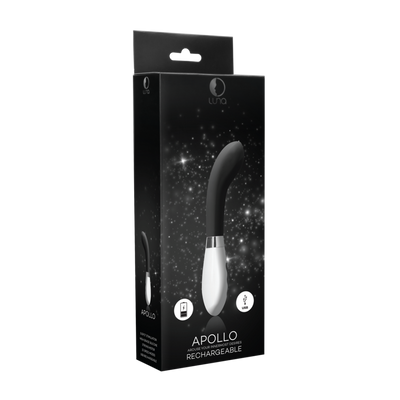 De APOLLO is speciaal ontworpen voor het genot van uw G-spot. Met zijn ergonomisch gevormdeschacht weet hij precies het juiste plekje te raken, en meer. Gemaakt van hoogwaardig siliconeen ABS. De ultrasterke F1-motor, die met een indrukwekkende 5200 omw/min kan draaien,zorgt ervoor dat u niet alleen in stijl komt, maar ook in stijl toekomt! Dankzij de 10-snelheidsmodiwaaruit u kan kiezen zal er altijd wel een instelling zijn die doet wat goed voelt en met minder dan55dB zal niemand anders het weten.Dit prachtige speelgoed is oplaadbaar via de meegeleverdeUSB-kabel. 30 minuten opladen geeft u 60 minuten ongebreideld plezier! De APOLLO heeft eenlengte van 21 cm en een diameter van 3,6 cm.