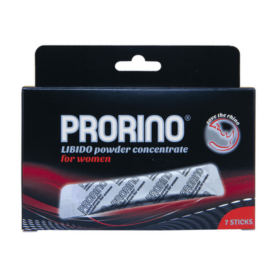 Prorino libidoverhogend poeder voor vrouwen. Het poeder lost gemakkelijk op in water. Drink het en merk dat je seksuele verlangens worden gestimuleerd! Elke verpakking bevat maar liefst zeven staafjes poeder. Geniet weer van seks met Prorino libidoverhogend poeder.Ingrediënten: Maltodextrine, 10% L-Arginine, 10% Taurine, Citroenzuur, Aroma, Natriumwaterstofcarbonaat, 4% Damiana Wortelpoeder, 1,4% Granaatappelextract, Zoetstof Acesulfaam K, 0,8% Cafeïne, Zoetstof Sucralose, Kleur Beta-caroteen