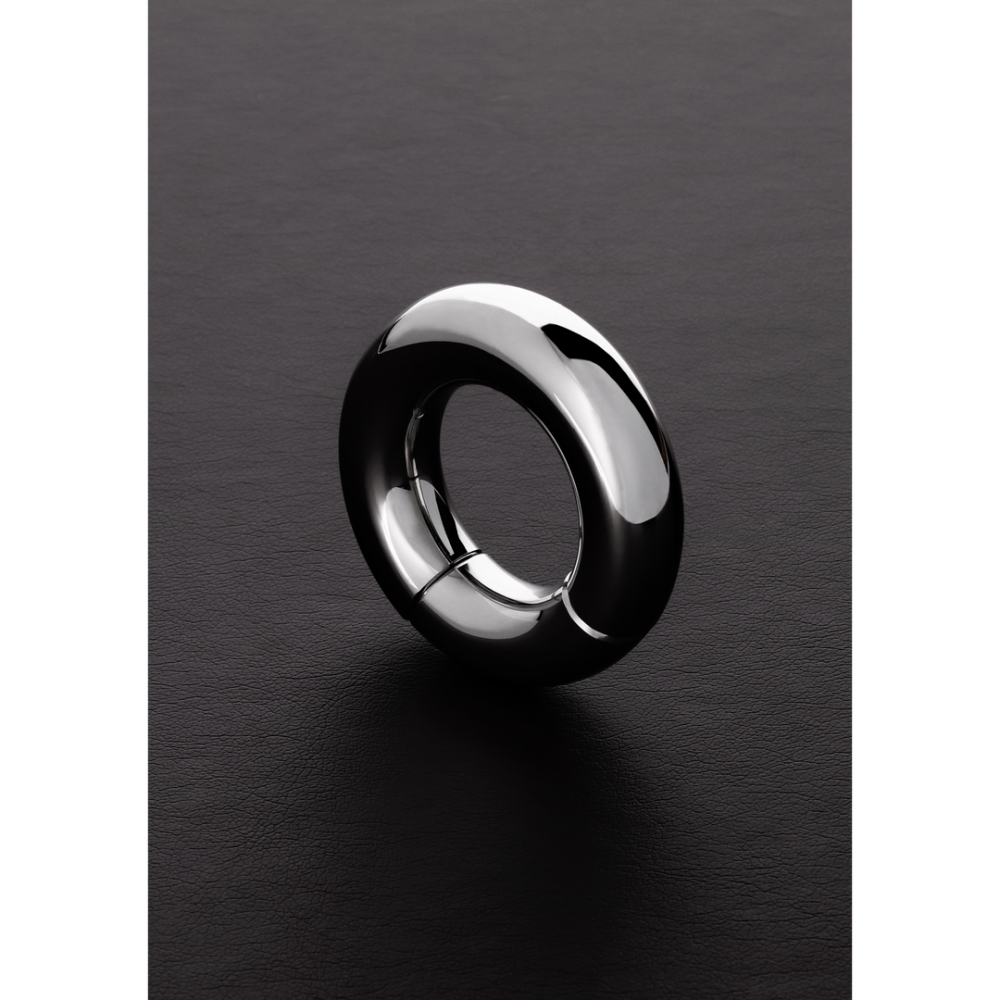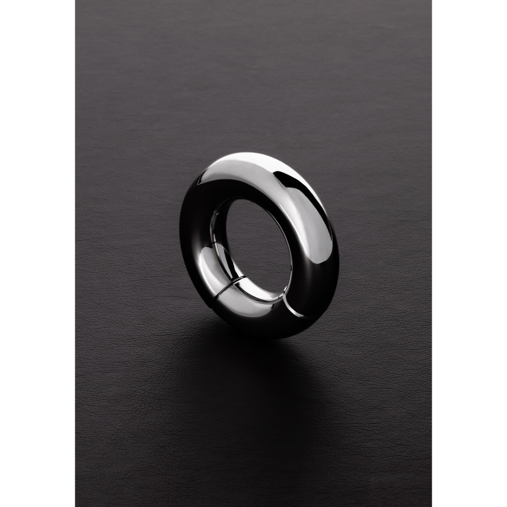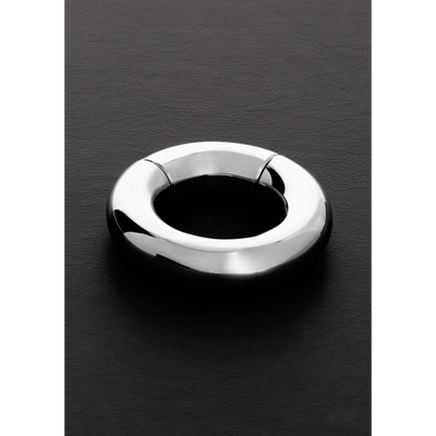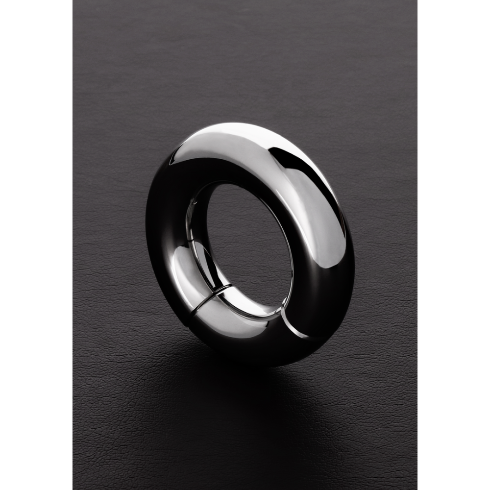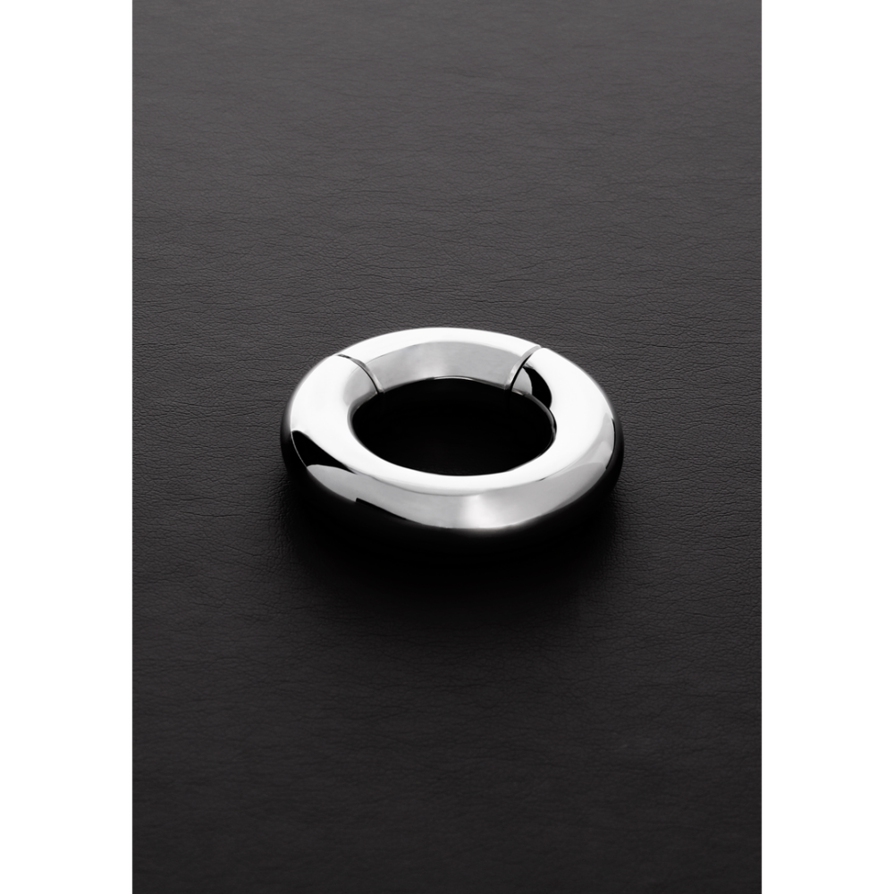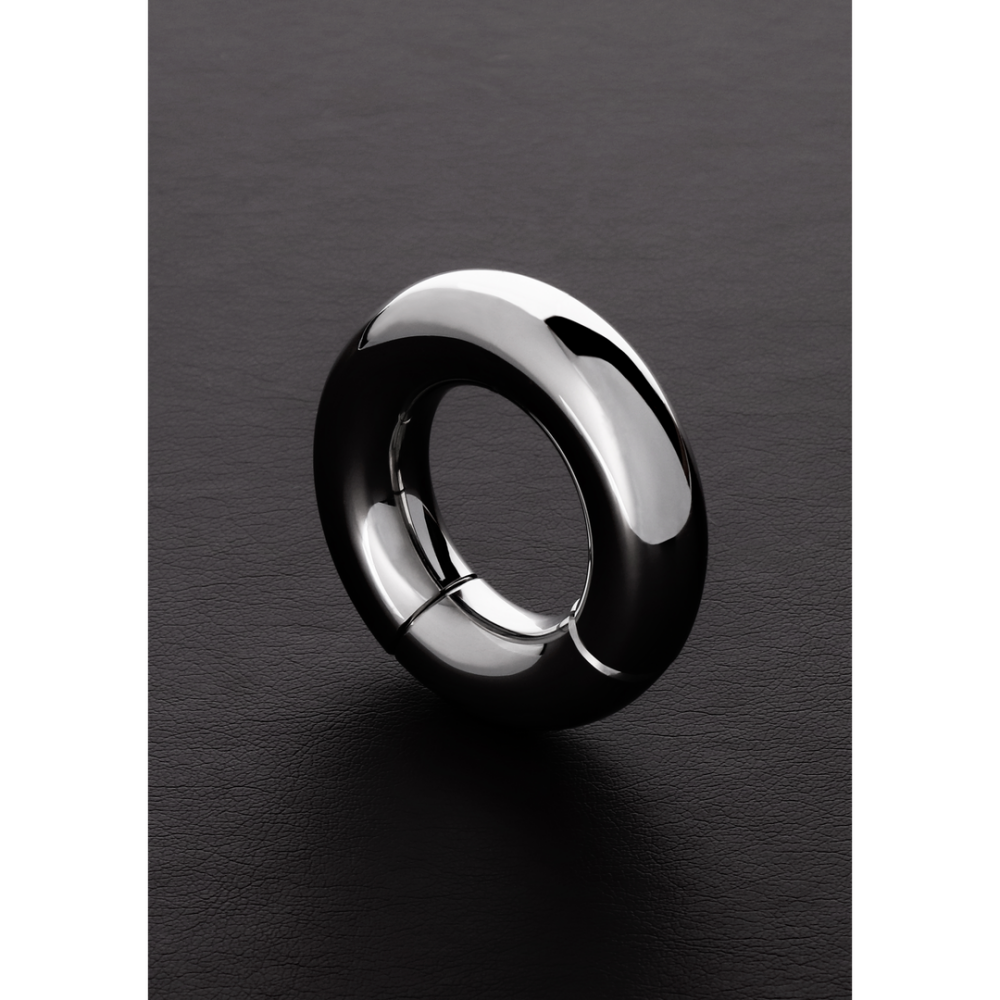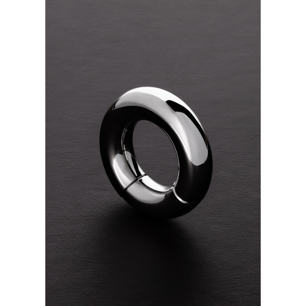 Geweldig voor CGT-enthousiastelingen of iedereen die van een sterke ruk aan hun scrotum houdt, deze zware roestvrijstalen ballstretcher heeft twee helften die magnetisch bij elkaar blijven. Het duurzame ontwerp geeft je bijna een pond aan gewicht om je ballen naar beneden te trekken. De krachtige magneet maakt dit apparaat gemakkelijk aan en uit te trekken, pas op dat je al je huid binnen de ring houdt! Gebruik het alleen of met een partner om je grenzen te testen. Roestvrij staal is compatibel met alle soorten smeermiddelen en reinigt grondig met milde zeep en warm water.