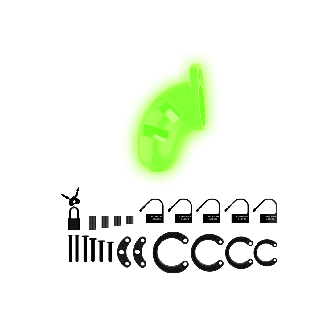 Feel the ultimate power as the key holder of your partners most intimate parts. Experience the most liberating feelings when opening the lock. All control is in the hands of your Dominant. This Mancage is an absolute must for people who love kinky BDSM! With this Mancage you prevent an erection by 'cageing' your penis - which builds up to an extreme release when it is removed. Due to the medical grade silicone it is safe to wear all day long, and is supple under clothing. This way you can wear it secretly, but with ease, anywhere you go. It can be adjusted at several points and is available in two sizes. There are five different rings and different spacers to measure it perfectly. It has functional openings for ventilation and toileting and is easy to clean. This Mancage comes with several plastic clasps, to be used if extra discretion is required (like security checks). These locks can be cut loose when the time comes for the ultimate release. A sturdy metal lock is also included. Looking for something really exciting and naughty? Do you want to be thoroughly controlled by your partner? This Mancage gives the opportunity to take all power or to completely hand it over to your partner. Kinky? That is a sure thing. Play safe, go for comfort and only allow discomfort or pain when asked and no one is harmed in the long run. Take off the cage while sleeping.