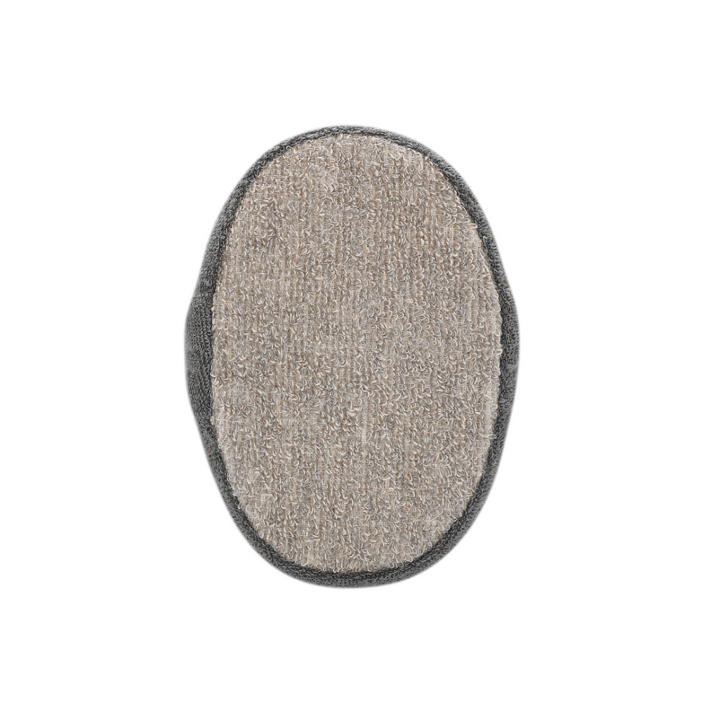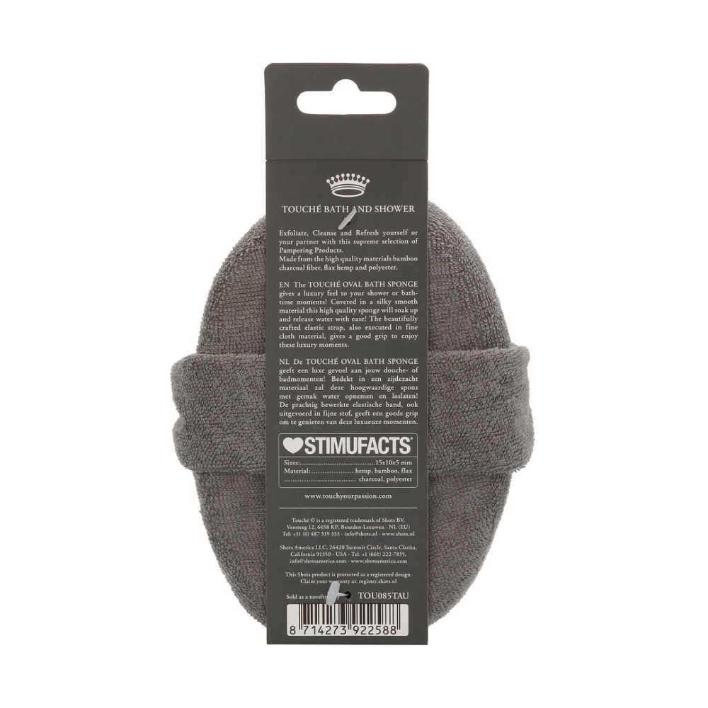 The Touché Oval Bath Sponge is the perfect accessory for cleansing and pampering your entire body. One side is silky smooth for a gentle polishing cleanse, while the other a rough scrub surface, for a thorough tingling exfoliating session. The natural fibres of Flax and Hemp are ideal for exfoliation and provide an all-over healthy glow to your skin. The Charcoal component helps draw out daily impurities and gently removes the build up of dirt and toxins from your pores. Just slip your hand through the elastic and add your preferred cleanser or body scrub and you’re ready to renew your skin to a vibrant glow.