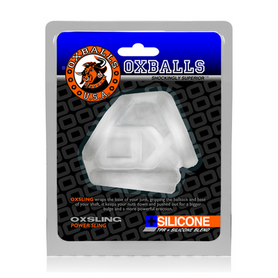 OXSLING is de gloednieuwe PLUS+SILICONE cocksling van OXBALLS. Onze PLUS+SILICONE combineert de kracht en rekbaarheid van TPR met de warmte en zachtheid van gladde silicone. Elke opening op OXSLING is versterkt met een dikke ring die je zak en schacht vasthoudt en je ballen naar beneden en weg van je lichaam duwt voor een intensere orgasme. Het zachte, veerkrachtige materiaal en het futuristische slingontwerp geven je een groter, robuuster pakket en een langdurige erectie. OXSLING is alles wat je leuk vindt aan onze originele cocksling ontwerpen, maar het is gemaakt van onze gloednieuwe PLUS+SILICONE samenstelling. Onze PLUS+SILICONE combineert de kracht en rekbaarheid van TPR met de warmte en zachtheid van gladde silicone garandeert dat je geslachtsdelen nog nooit zoiets hebben gevoeld. Elke opening op OXSLING is versterkt met een dikke ring die je vlees vasthoudt en je noten naar beneden en weg van je lichaam duwt. Het superzachte materiaal en het multi-ring ontwerp creëren de sensatie van een hand die je schacht en zak zachtjes knijpt. De veelzijdige vorm van OXSLING kan op verschillende manieren worden gedragen voor een andere pasvorm en gevoel. Draag de kleinere ring naar beneden voor een strakkere pasvorm op je ballen of draai deze naar je lichaam voor meer druk op je geslachtsdeel of schacht. De opvallende reliëf OX letters laten je je favoriete speelgoedmerk vertegenwoordigen terwijl je je beste troeven laat zien.