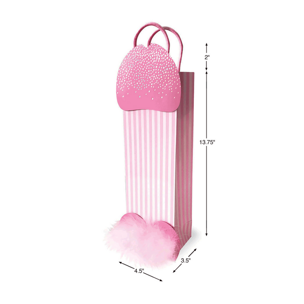 Cadeaus geven zag er nog nooit zo goed uit. Deze speelse en sexy cadeauzak is de perfecte maat voor het geven van vibrators of wijn. Gemaakt van dik karton en stevige geweven handvatten, is deze hoge cadeauzak gevormd als een penis met glinsterende pailletten en maraboeveren ballen.