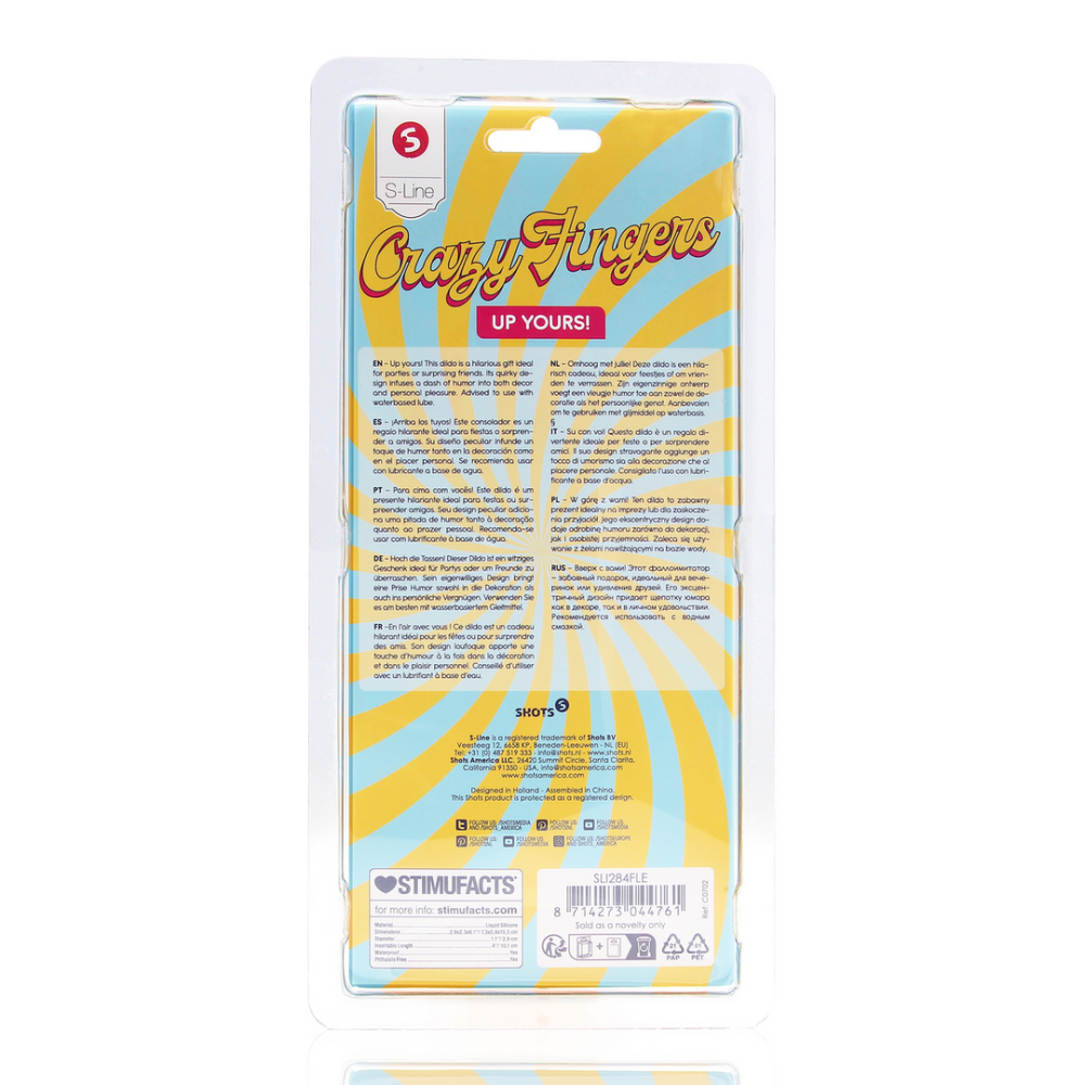 Omhoog met jullie! Deze dildo is een hilarisch cadeau, ideaal voor feestjes of om vrienden te verrassen. Zijn eigenzinnige ontwerp voegt een vleugje humor toe aan zowel de decoratie als het persoonlijke genot. Aanbevolen om te gebruiken met glijmiddel op waterbasis.