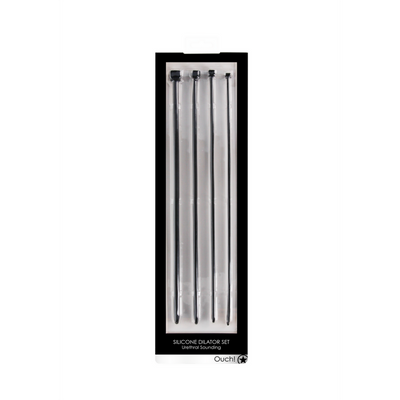 De OUCH! Urethral sounding dilator set, bestaat uit 4 ftalaatvrije, soepele silicone dilators van hoge kwaliteit, die stapsgewijs gebruikt kunnen worden voor urethraal spel. Deze kan gebruikt worden om een immense stimulatie te creëren en om geleidelijk nieuwe genotssferen te verkennen. Deze eenvoudig uitziende dilators kunnen zorgen voor ongelooflijke sensaties en helpen met het opbouwen van sterke erecties en krachtige orgasmes. Ze zijn ideaal voor BDSM-spel en in het bijzonder om medische spelervaringen te creëren. Elke dilator heeft een inbrengbare lengte van 35,7 cm, met diameters die variëren van 0,35 cm tot 0,75 cm voor geleidelijk comfortabele vergroting. Elke plug heeft een vierkant uiteinde dat fungeert als stopper en zorgt voor extra grip. Waarschuwing: Als er niet zorgvouldig mee wordt omgegaan, kan het leiden tot irritatie, scheuren van de urethra, of tot een urinaire kanaalinfectie.