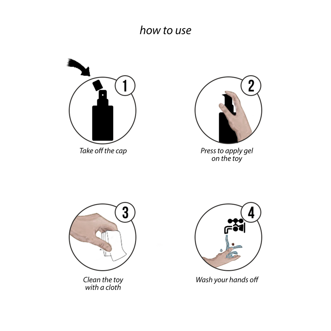 Foaming Toy Cleaner: A quick and effective foam for cleaning erotic toys. Application: Spread directly onto the surface of the product to be cleaned. Rinse with water or use a damp cloth, then rub dry. This product does not contain dyes, parabens, phosphates, chlorine, ammonia or acids. It is full of natural ingredients and is at least 95% biodegradable. The bottle and packaging is made from recycled and biodegradable plastic. Storage: Keep in the original packaging at room temperature.