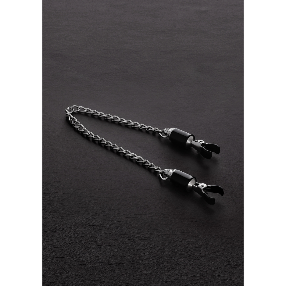Deze Deluxe verstelbare tepelklemmen zijn een must voor elke tepel speelenthousiasteling. Deze klemmen zijn bijna volledig gemaakt van roestvrij staal. De punten van de klemmen zijn voorzien van een rubberen laag voor extra comfort. Deze klemmen zijn in hoge mate verstelbaar, je kunt heel streng zijn met de hoeveelheid pijn die je je partner of sub laat voelen! De klemmen zijn verbonden door een ketting van 12 (43,7cm).