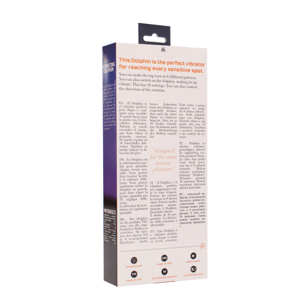 De Dolphin is de perfecte vibrator om elke gevoelige plek te bereiken. Je kunt de top laten draaien met 8 verschillende ritmes. Daarnaast kun je het konijn aanzetten waardoor het puntje gaat trillen. Deze is in 36 variabelen instelbaar. Ook de richting van het draaien kun je aangeven.