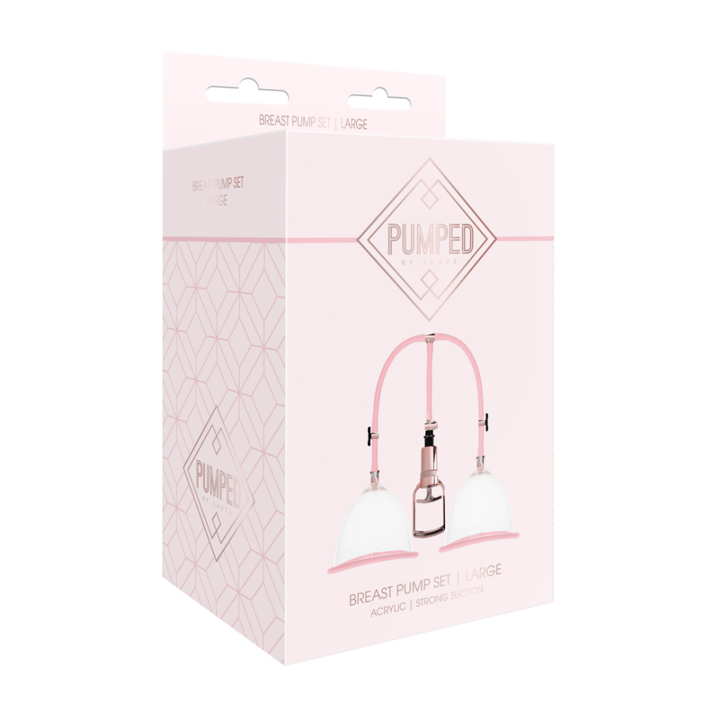 Pomp en vergroot. Laat uw borsten er op hun best uitzien met deze Pumped Breast Pump Set van Shots. Deze borstpomp van on- gelooflijk hoge kwaliteit helpt bij het verstevigen en vergroten van het formaat van uw borsten. Met behulp van snelle en efficiënte vacuüm- zuiging, voelen uw borsten voller en gevoeliger, waardoor dit een perfect accessoire is om uzelf klaar te maken voor de slaapkamer. De nap is ontworpen met een soepel, silicone zegel, waardoor hij enorm comfortabel is en lucht en vocht buiten houdt. Erg makkelijk in gebruik. U bevestigt eenvoudig de slang aan de pompnap en plaatst de nap op uw borst. daarna pompt u tot u het gewenste effect heeft bereikt. Werkt bij alle borstmaten. Bruikbaar met alle soorten glij- middel. Gebruik hem niet langer dan 20 -30 minuten voor beide bor- sten en pomp niet langer dan tot het punt waarbij u zich comfortabel voelt. Deze set bestaat uit 2 borstnappen, 1 slang en 1 handpomp.WAARSCHUWING: Lees de producthandleiding alvorens een vacuümpomp te gebruiken. Stop onmiddellijk met het gebruik van het apparaat als u pijn of ongemak ervaart.