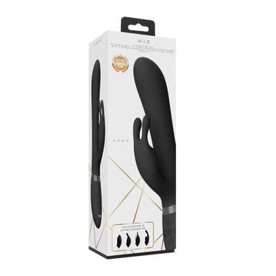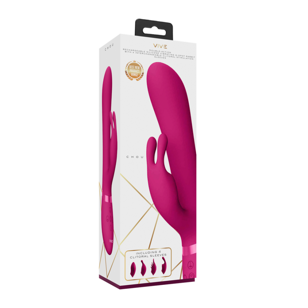 CHOU is een van de krachtigste en meest veelzijdige vibrators op de markt. Het beschikt over 4 verschillende, verwisselbare, siliconen clitorisstimulatie hulzen voor een rijke stimulatie. Het bevat daarnaast twee nieuwe generatie F1-motoren met 10 functies met geavanceerde technologieën (de twee motoren kunnen onafhankelijk worden bestuurd). De vibratortip bevat een NG F1-vibratiemotor met 10 functies voor G-Spot-stimulatie en bevat tegelijkertijd een unieke NG F1-vibratiemotor met 10 functies voor clitorisstimulator. Dit betekent dat je speeltje tot 100 verschillende instellingen biedt en met 4 verschillende clitorishoezen zijn je opties echt eindeloos. Het speeltje is gemaakt van 100% zijdezachte siliconen van medische kwaliteit (hypoallergeen), volledig waterdicht (IPX7) en extreem stil met minder dan 60 dB. Dit betekent dat u het kunt gebruiken waar uw hartje begeert. De lithium-ionbatterij van het speeltje word opgeladen middels de magnetische USB aansluiting. Wanneer hij volledig is opgeladen, biedt hij 40 minuten aan gepassioneerde speeltijd. Zo simpel: aansluiten, opladen en heerlijk spelen! Wanneer je bijna een climax nadert, kun je met één druk op de speciale functie climax-knop alle motoren onmiddellijk op volle kracht / snelheid zetten en, nog belangrijker, je naar een wereldschokkend orgasme brengen. Alle VIVE-vibrators worden geleverd met een volledige garantie van 1 jaar.NNNNNNNNN