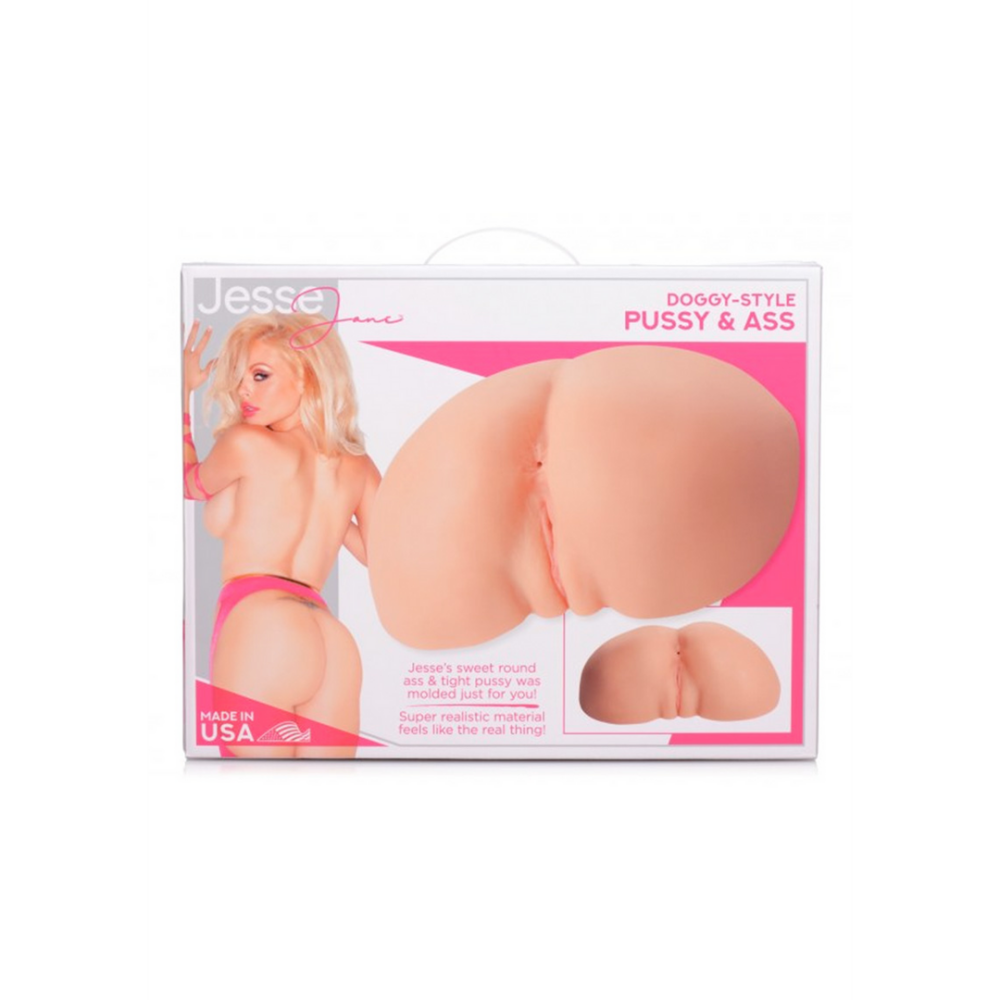 Haar beide strakke, perfecte gaatjes zijn volledig zichtbaar en wachten op jou om ze op te vullen! Jesse Jane is hier om haar troon terug te eisen. De blonde en rondborstige blondine is terug en klaar voor je pik! Deze All-American bombshell is een van de grootste pornosterren aller tijden, bekend om haar bekroonde seksscènes en mainstream optredens. Deze levensgrote mal van haar kutje en kontje is speciaal voor jou gemaakt! Het realistische materiaal is rekbaar voor alle maten en voelt net als het echte werk, zowel op je schacht als onder je handen terwijl je over haar kutje wrijft en haar openspreidt! De stoutmoedige geribbelde en geribbelde textuur diep in haar gaten zal je schacht masseren terwijl je haar koortsachtig neukt. Neem de tijd of maak er een vluggertje van! Jesse Jane is altijd geil voor jou. Door het open ontwerp is dit masturbatiespeeltje na gebruik gemakkelijk schoon te maken en is het materiaal ftalaatvrij.