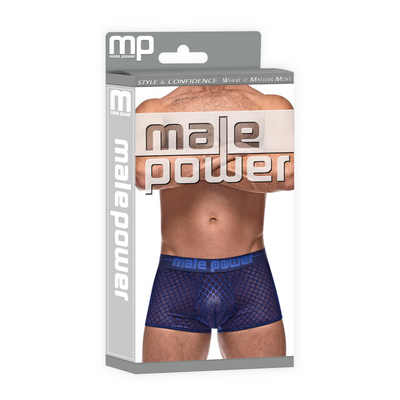 Van de Diamond Mesh-collectie van Male Power, deze stijl omvat: een mini-short, hoge uitsnijdingen, een lage taille en een ultra-zachte, gebrandmerkte tweekleurige tailleband.