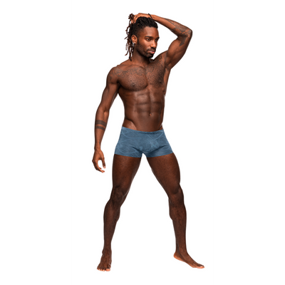 Van de Male Power Inter-mingle collectie omvat deze stijl een mini short met een lage taille, hoge beenopeningen, een contour zak en volledige bedekking aan de achterzijde.