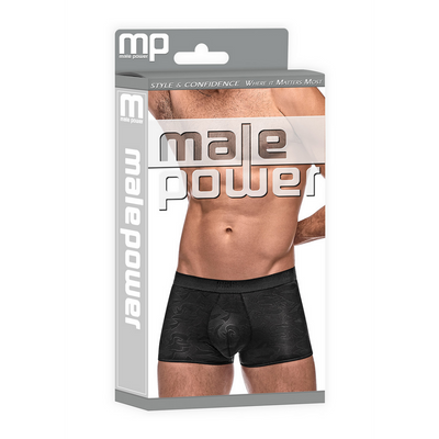Van de Impressions-collectie van Male Power, deze stijl omvat: Een mini short, met hoog uitgesneden elastische benen, een natuurlijke comfort pouch, en een reliëf logo in dezelfde kleur op de tailleband.