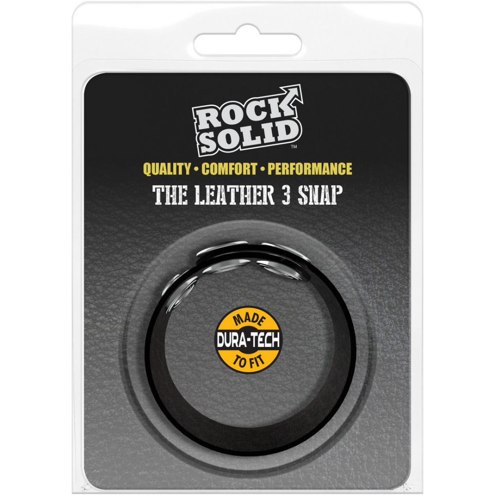 De Leather 3 Snap cock ring is gemaakt van echt koeienleer. Met drie drukknopopties past hij moeiteloos op de meeste anatomieën. De nikkel drukknoppen zijn sterk maar toch gemakkelijk te openen. Rock Solid cock rings verbeteren de grootte en dikte voor langere, hardere erecties en zijn volledig veilig voor het lichaam.