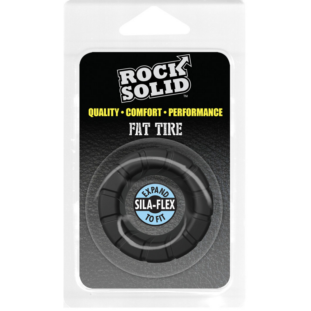 De Fat Tire is een brede ring met vlakke zijkanten en een robuust profielontwerp voor maximale stimulatie. Gemaakt van zacht, rekbaar silicone. Rock Solid ringen vergroten de grootte en dikte voor langere, hardere erecties en zijn volledig lichaamsveilig.
