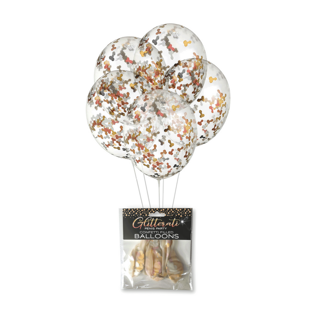 Onze Glitterati-lijn van feestproducten is ontworpen om je volgende vrijgezellenfeest te verheffen met elegantie en verfijning. Ontworpen voor de bruid met een feilloze smaak, stijl en klasse, tillen onze Glitterati Penis Ballonnen je volgende penisfeest naar VIP-status. Onze ballonnen zijn gevuld met leuke metallic penisconfetti (goud, zilver, roségoud en brons). Elke verpakking bevat vijf doorzichtige ballonnen van 11 gevuld met penis. Maak de look compleet met bijpassende Glitterati borden, servetten, kaarsen en meer!