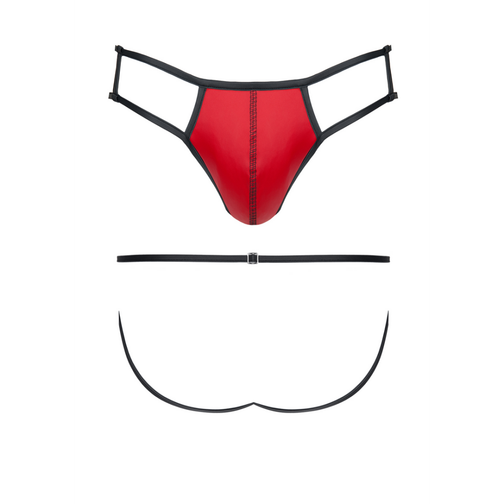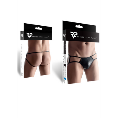 Wetlook men's jock with decorative metal element on the back.This style has the Big-Boss Effect, this means that it has an extra pouch on the inside for the male parts. This enhances and accentuates the shape.