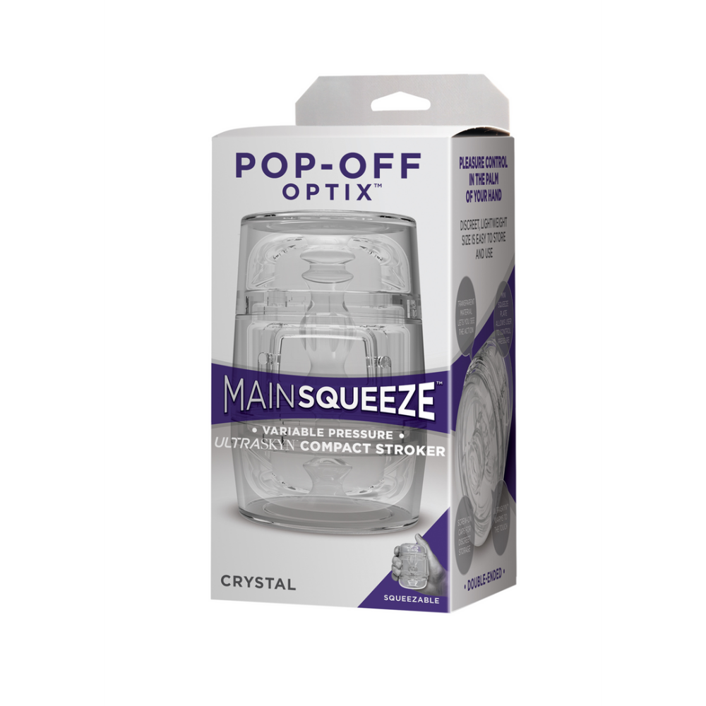 Zie jezelf op een geheel nieuwe manier. Deze toevoeging aan de Optix-categorie van Main Squeeze-strepen met variabele druk heeft het unieke, volledig transparante ontwerp van de collectie dat niets aan de verbeelding overlaat, in een verkleind formaat dat in de palm van je hand past. De harde plastic behuizing van Pop-Off en het strakke, getextureerde ULTRASKYN-inzetstuk bieden dezelfde visueel stimulerende ervaring en samenknijpbare, strak-controlerende grip als het origineel in een discreet compact formaat.