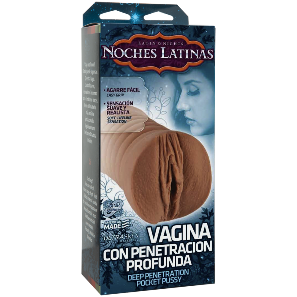 De Noches Latinas-lijn vertegenwoordigt het nieuwste op het gebied van plezier van Doc Johnson. We presenteren u de prachtige karamelkleurige kutmasturbator. Deze items zijn discreet en gemakkelijk te gebruiken door hun heerlijk compacte ontwerp. Mannen zullen genieten van het realistische gevoel, aangezien deze lijn is gemaakt van latexvrij ULTRASKYN™ het meest vlezige, authentieke materiaal op de markt. Ze voelen zelfs warm aan, voor een zeer sensationele ervaring waar consumenten dol op zijn! Alle verpakkingen voor onze Noches Latinas-lijn zijn voornamelijk in het Spaans geschreven en op de markt gebracht voor Spaanssprekende speelgoedgebruikers. De Noches Latinas Amiga Para La Palma-lijn omvat een vagina, kont en mond. Deze producten zijn Proudly Made in America, exclusief door Doc Johnson.