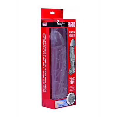 Krijg drie centimeter stevige lengte en ongeveer een centimeter omtrek met deze penisversterkende sleeve! Het stevige, maar flexibele materiaal voelt realistisch aan, met een gedurfde kop en uitpuilende aderen langs de schacht. Glijmiddel en duw je lul naar binnen om je partner een nieuwe sensatie te geven om uit te proberen tijdens seks! De stevige punt van 3 inch wordt gevolgd door een holle binnenkant die zorgt voor een goede en veilige pasvorm. Je zult genieten van de enorme noppen die je lid aan de binnenkant masseren. Creëer een persoonlijke pasvorm door de onderkant van de mouw op de perfecte maat af te knippen! Dit materiaal is compatibel met siliconen en glijmiddelen op waterbasis. Gebruik warm water en milde zeep of speelgoedreiniger om na gebruik schoon te maken.