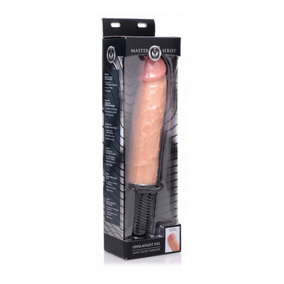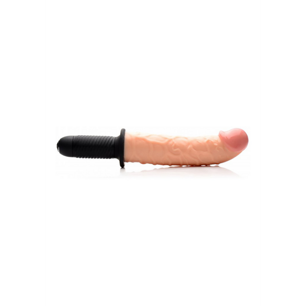 Dit enorme, geveste mensenvlees is ultrarealistisch, met uitpuilende aderen en een bolle kop! Deze onvergetelijke boegschroef zal je van binnen masseren met elke ram van die enorme schacht. Hoeveel denk je aan te kunnen? Met een uitstekende lengte van 9,75 inch, 3 intense vibratiesnelheden en 10 unieke pulsatiepatronen, heb je genoeg om mee te werken! Pak de gegroefde, gemakkelijk vast te pakken handgreep vast en richt op je favoriete gat. Gebruik alleen of met een partner voor een intense penetrerende ervaring! Compatibel met glijmiddelen op siliconen- en waterbasis.