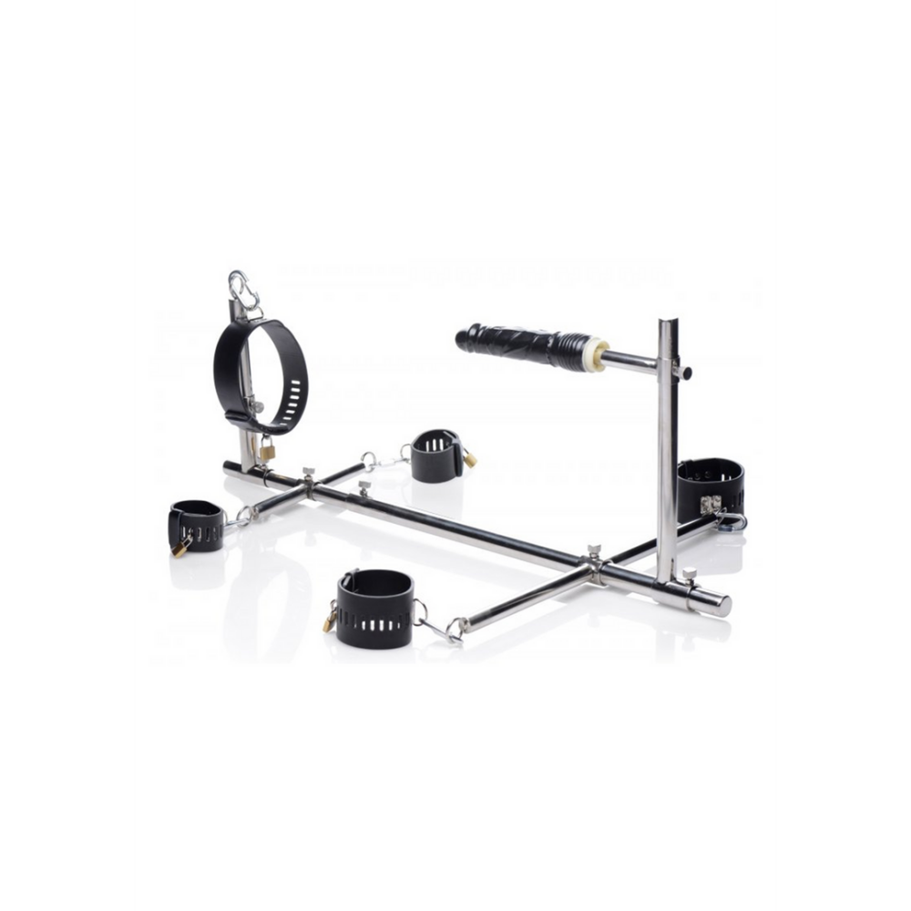 Straf en bevredig je speeltje in deze sluw onderscheidende draai aan een palissade! Houd je geliefde vast aan hun nek, beide polsen en hun enkels terwijl ze worden gepenetreerd door een geaderde zwarte pik! Alle onderdelen van dit opmerkelijke apparaat zijn verstelbaar, zodat je de basisstang kunt verlengen, de hoogte van de dildo en kraag kunt aanpassen en de locatie van de polsen en enkels van je geliefde kunt wijzigen. De constructie kan niet eenvoudiger, met eenvoudige schroefvaste verbindingsbuizen. De luxe, heavy-duty manchetten zijn allemaal afgewerkt met een vergrendelingsbeugel om ervoor te zorgen dat ze niet kunnen ontsnappen, en een D-ring om ze aan de palissade te bevestigen of zelfs te gebruiken in andere bondagescènes! Verrijk je BDSM-fantasieën terwijl ze tot leven komen met een uniek instrument voor gesloten penetratie.