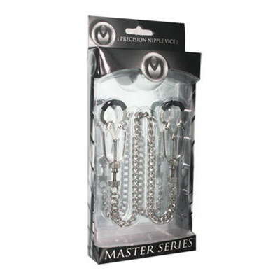 De Bauhaus Nipple Vice is ontworpen voor precisie en kracht en komt naar u toe met twee klemmen die kunnen worden aangepast aan het gewenste niveau van strakheid met de stelschroeven aan de basis. De tips zijn bedekt met zacht TPR met de toevoeging van een delicate curve helemaal aan het einde die helpt bij het vastgrijpen van de huid van uw onderwerp. Het einde van dit indrukwekkende stuk is de toevoeging van een 12-inch verbindingsketting die er zo aanlokkelijk uitziet als hij aan de tepels van je speeltje hangt.