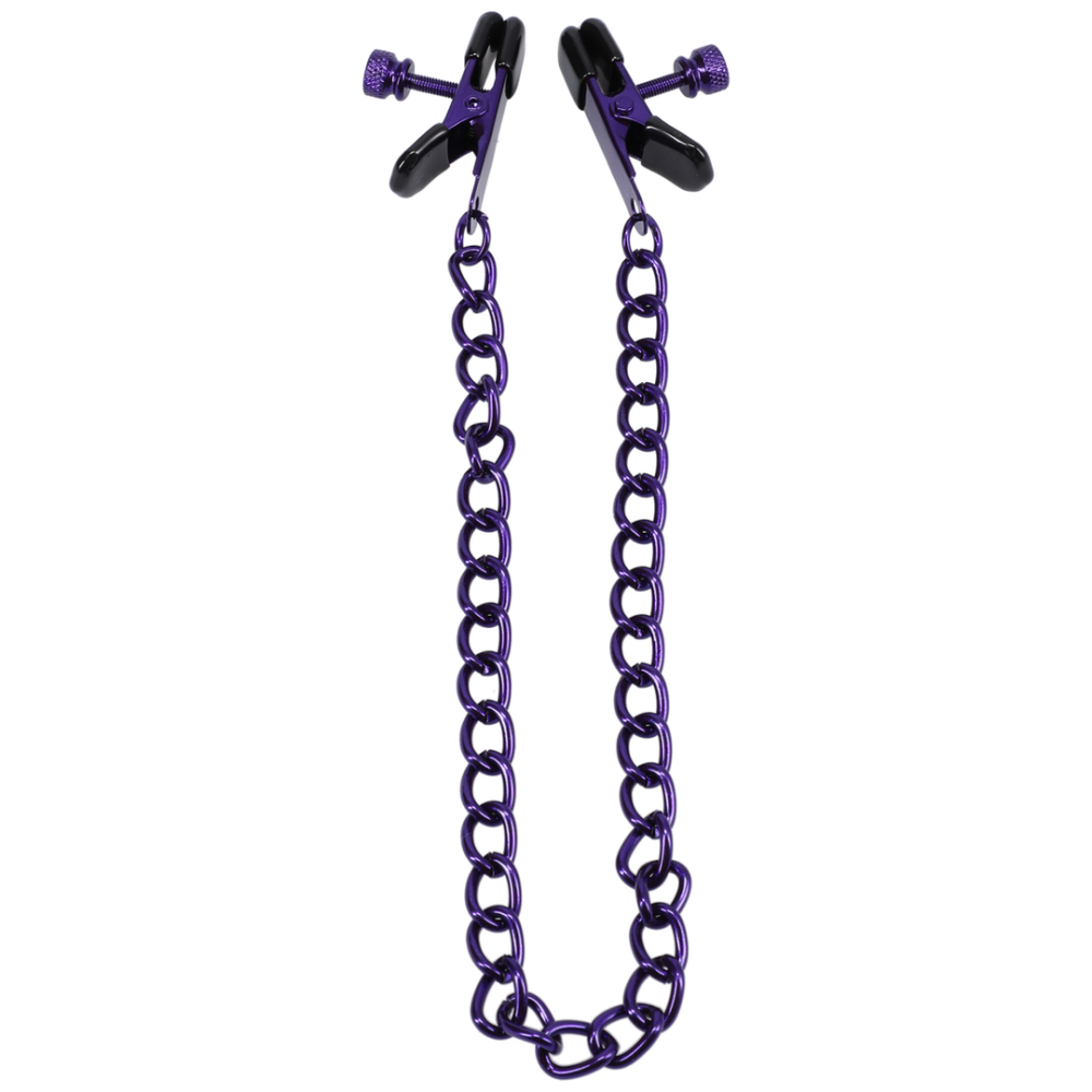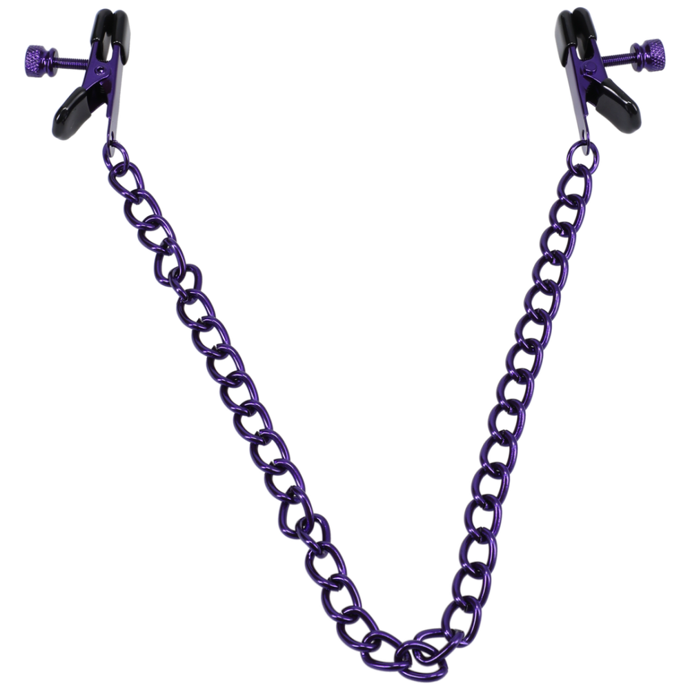 Iedereen houdt van een beetje plezier! Chained Up tepelklemmen zijn verbonden door een ijzeren ketting. De sterkte en grootte van de klem kunnen worden aangepast, zodat ze een zachte knijp of een intense grip kunnen bieden. Ideaal voor solo of partner spel, ze houden je tepels geprikkeld terwijl je je op de rest concentreert.