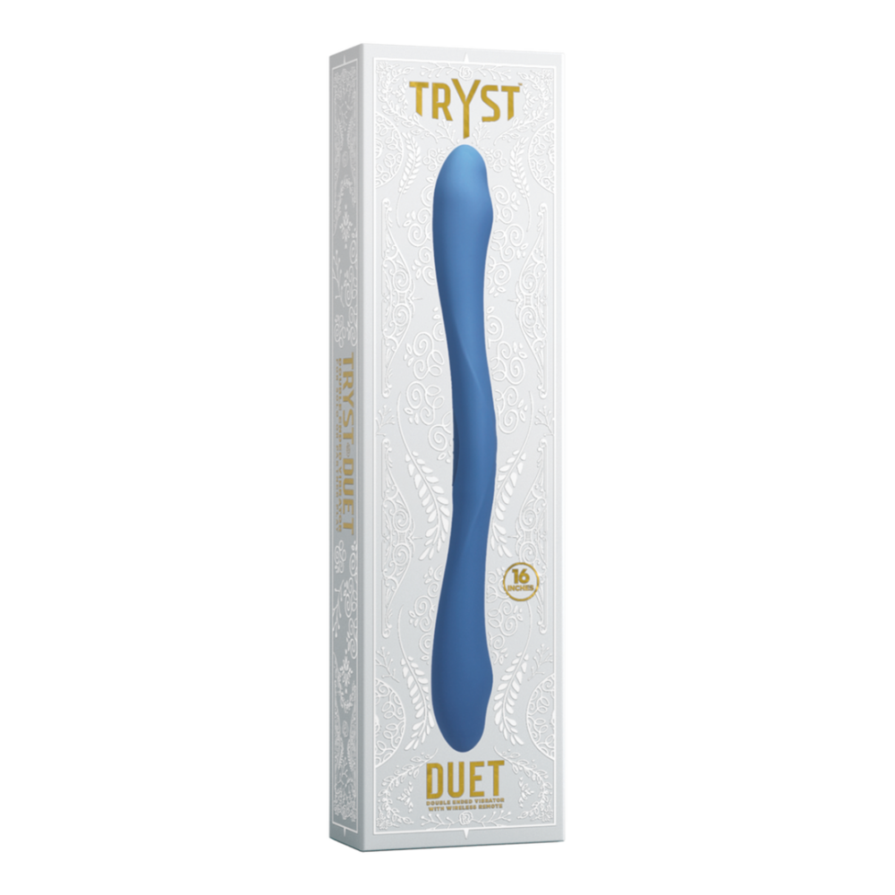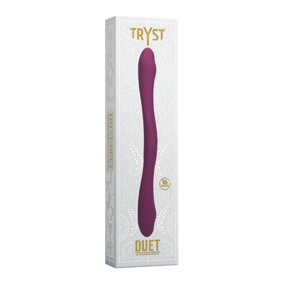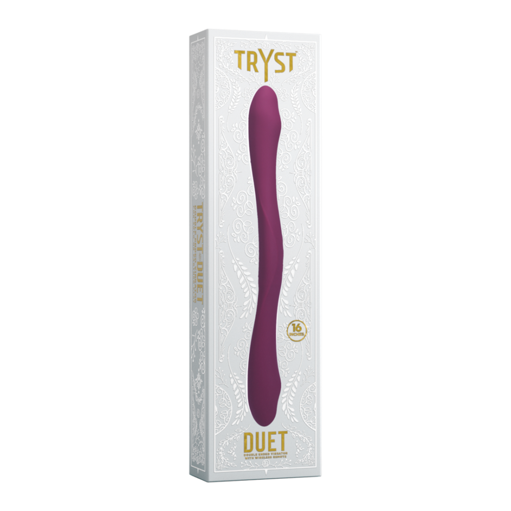 Ontworpen voor intens plezierige partner- en solo-spel, deze buigzame siliconen dubbelzijdige vibrator heeft onafhankelijk bestuurde motoren aan elk uiteinde. Omdat elke motor zijn eigen knop heeft, kan het ene uiteinde volledig worden uitgeschakeld terwijl de andere actief is, of kan elk op een ander trilmuster worden ingesteld om elke combinatie van de 10 krachtige trilmodi te genieten. De TRYST Duet is leuk en eenvoudig te gebruiken met de draadloze afstandsbediening en magnetische USB-oplaadkabel.