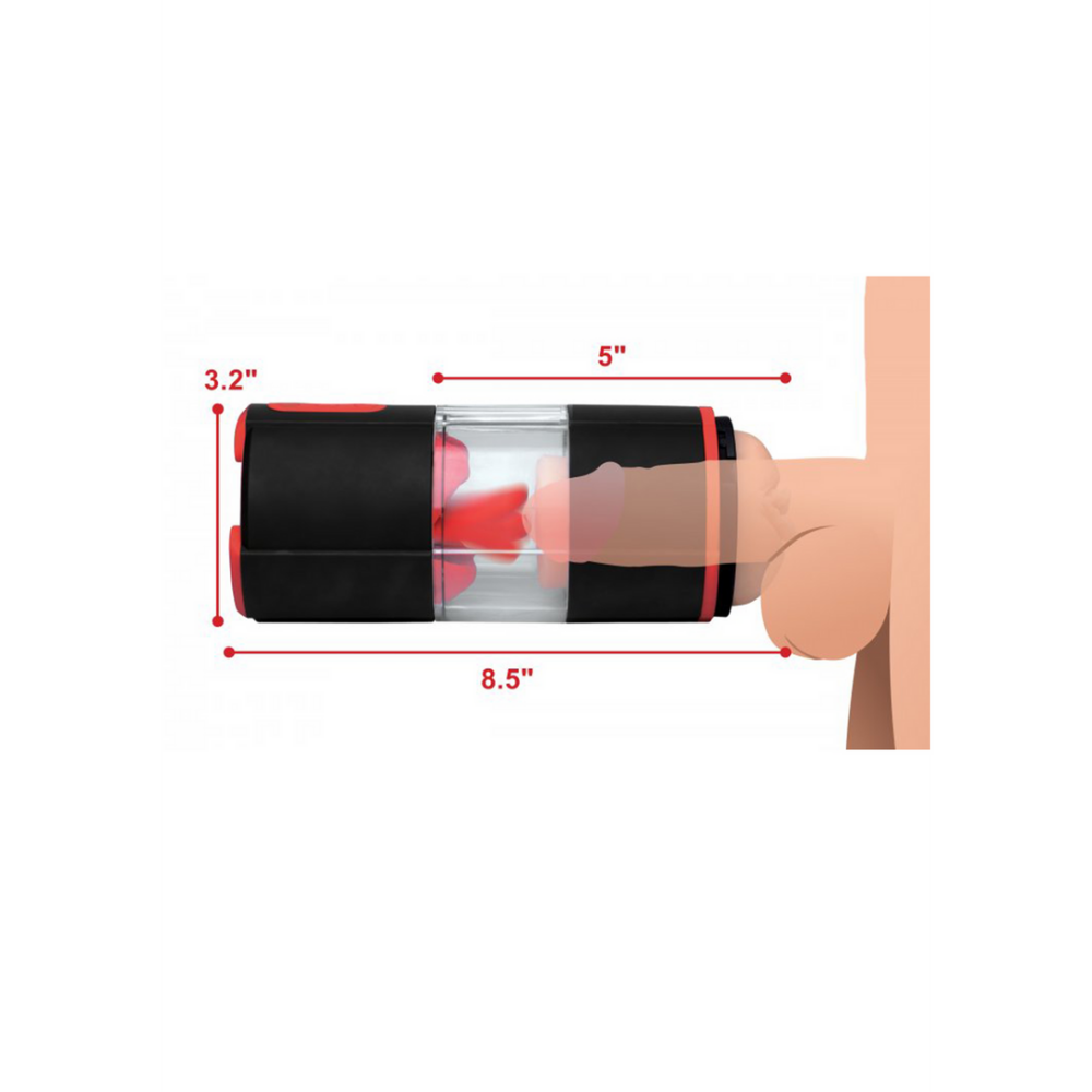 Deze vibrerende masturbatie-stretcher gaat verder dan fantasie, waardoor je een vagina kunt penetreren en een tong van binnen kunt voelen! Trakteer je penis op 3 snelheden en 4 functies van vibratie van de vulva en flikkeren van de tong. Gewoon smeren en erin glijden! Je kunt het tonggedeelte zelfs losmaken om het apart op andere delen van het lichaam te gebruiken. De vulva is gemaakt van een zacht materiaal dat ultrarealistisch aanvoelt, met textuurdetails aan de binnenkant. De siliconen tong is stevig maar flexibel. Ervaar tegelijkertijd vaginale en orale seks met deze innovatieve mannelijke masturbator! Gebruik alleen met glijmiddelen op waterbasis en reinig met milde zeep of speelgoedreiniger om de materialen te behouden. Er wordt een dop meegeleverd voor eenvoudig opbergen.