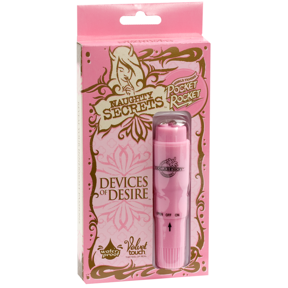 Doc Johnson's geheim voor zeer ondeugende nachten -- de Naughty Secrets Devices of Desire Pocket Rocket is de perfecte vibrator voor romantische ontmoetingen. Het fluweelachtige ABS-materiaal voelt geweldig aan, en de sterke vibraties zullen zeker plezier doen! Hoe voelt het om opgenomen te worden in zo'n Naughty Secret?