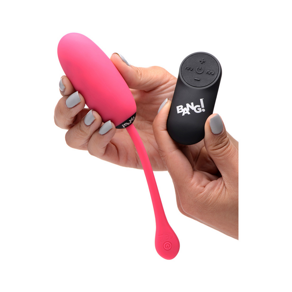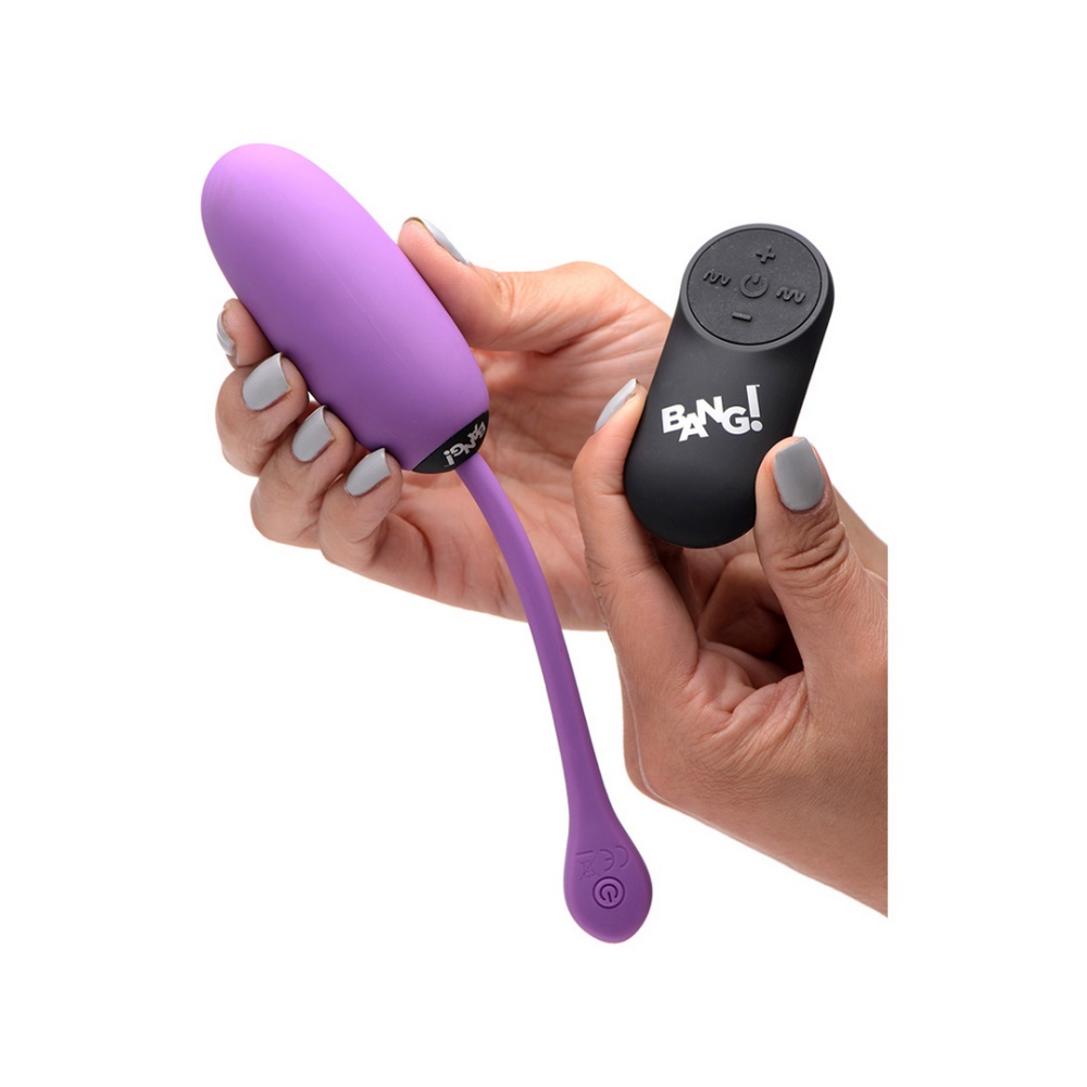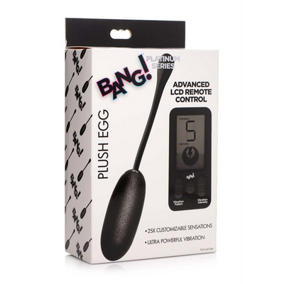 BANG!’s Plush Silicone Vibrating Egg voelt als een wolk wanneer hij wordt ingebracht, met zijn zachte, veerkrachtige materiaal dat ultra-comfortabel aanvoelt tegen je lichaam! Met 5 verschillende vibratiepatronen en 5 intensiteitsniveaus kun je mixen en matchen voor een totaal van 25 verschillende combinaties van plezier, wat je veel opties geeft wanneer de stemming toeslaat. Gebruik hem vaginaal voor directe G-spot stimulatie en haal hem gemakkelijk terug met de bijgeleverde trekkoord. Het hypoallergene silicone heeft een elegante metallic glans die zijdezacht aanvoelt. Deze plus-size bullet is waterdicht, waardoor je praktisch overal kunt spelen. De verlichte LCD-display afstandsbediening laat je precies zien op welk intensiteitsniveau en welk vibratiepatroon je zit, zelfs in het donker. De extra afstandsbediening is geweldig voor solo gebruik of spannende partnerplezier! Gebruik het in de slaapkamer of voor een avondje plezier in de stad. Speel met vertrouwen - dit ei is gemaakt van lichaamsveilige, niet-poreuze, ftalaatvrije silicone. Gebruik alleen met waterbasis glijmiddel, silicone materiaal is niet compatibel met op silicone gebaseerde glijmiddelen. Kleur: Metallic Zwart Afmetingen: Totale lengte 19,8 cm, inbrengbare lengte 8,4 cm, breedste inbrengbare diameter 3,3 cm, koordlengte 11,2 cm Materialen: Silicone, ABS Plastic Inclusief: Silicone Plush Egg Vibe, afstandsbediening met 1 CR2032 batterij (inbegrepen), USB oplaadkabel en gedetailleerde instructies